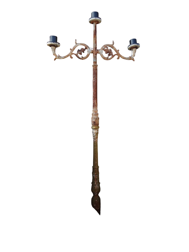 Lampione, dimensioni: lunghezza cm 92, larghezza cm 13, altezza cm 204. Disponibili n. 2